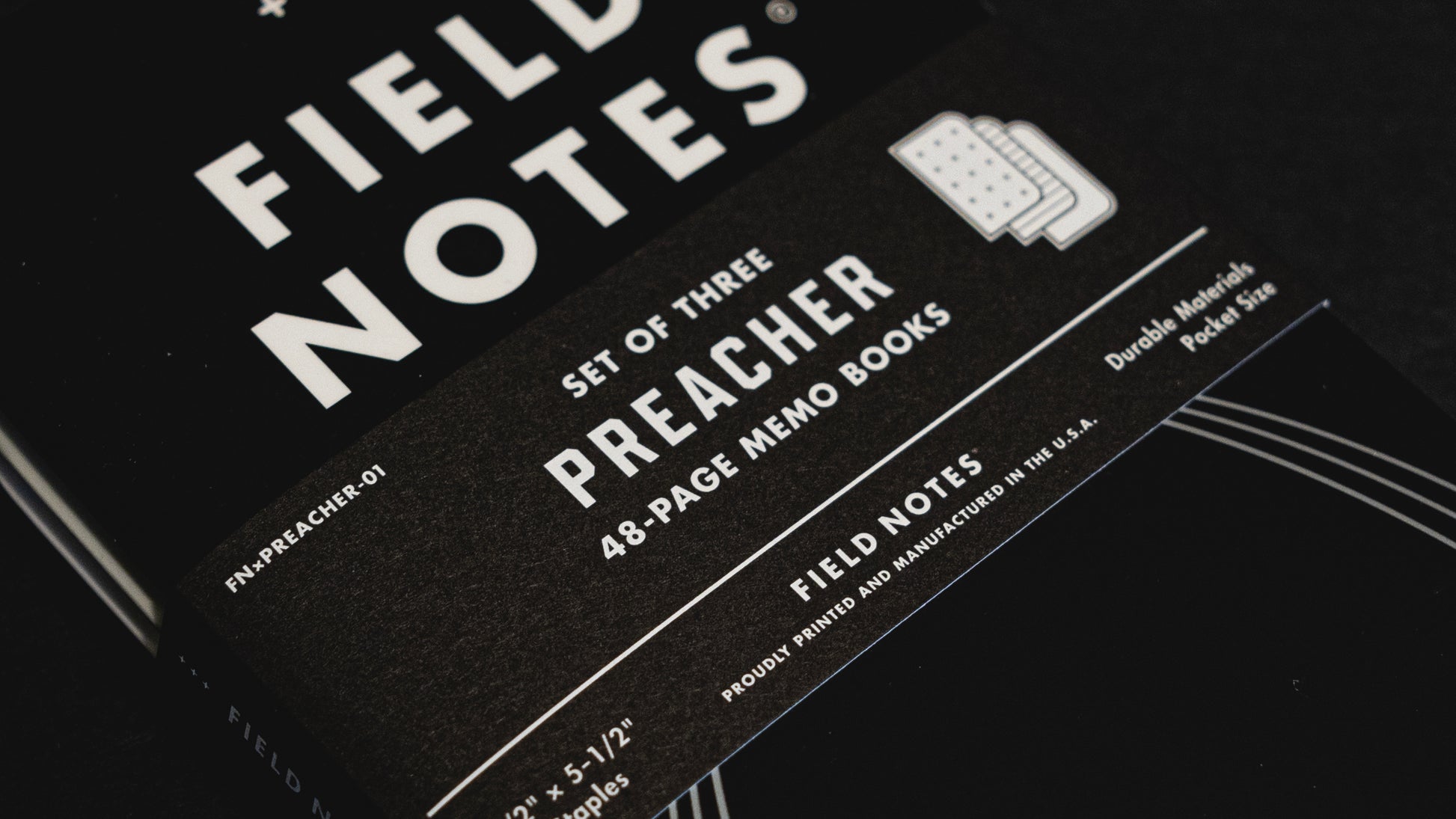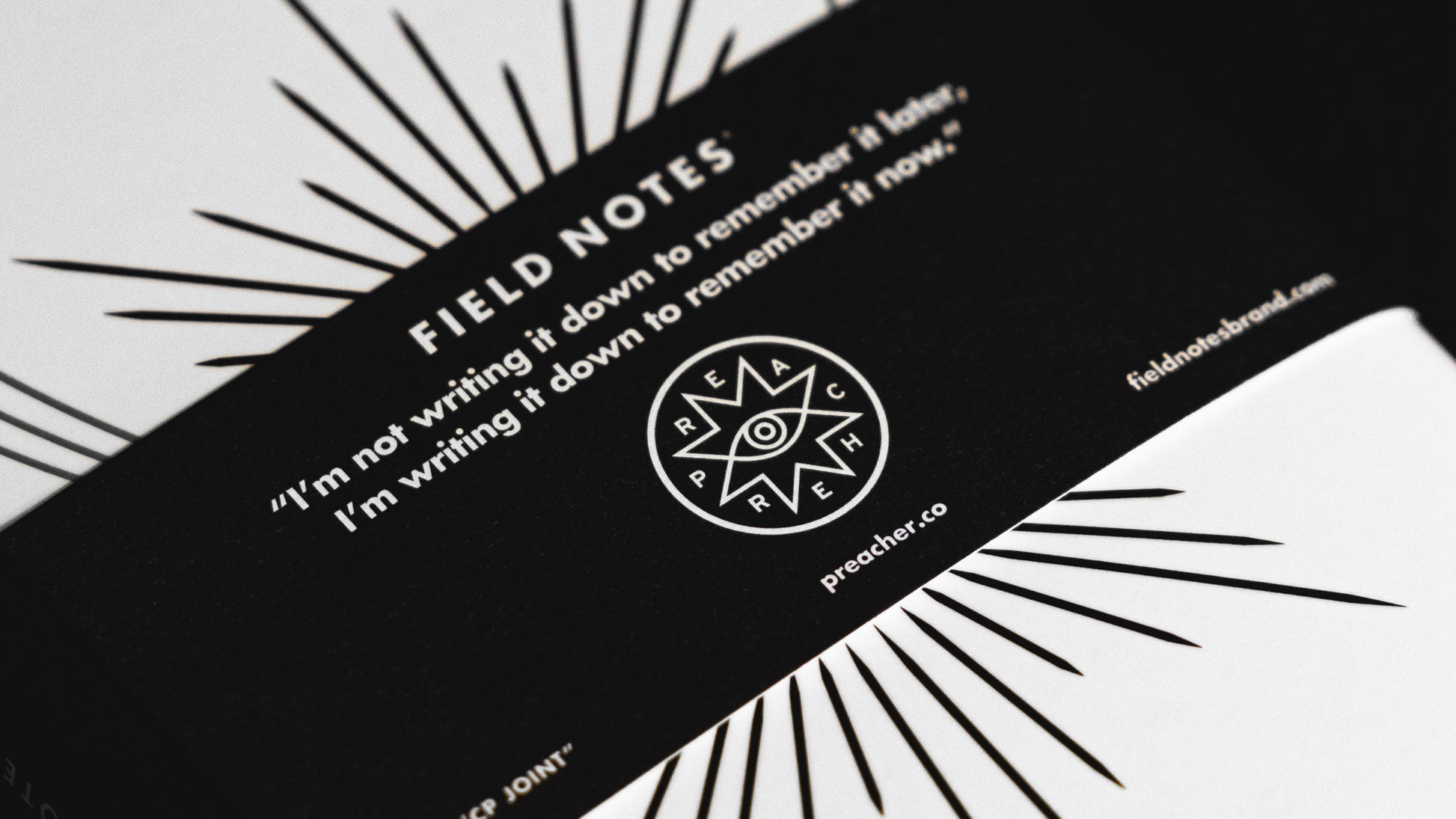 You know 'em, you love 'em, we've got 'em. World Famous Field Notes, created by our buddy Aaron Draplin, are now available in our very own custom 3-pack. Get your Preacher x Draplin Field Notes and may your thoughts be saved!