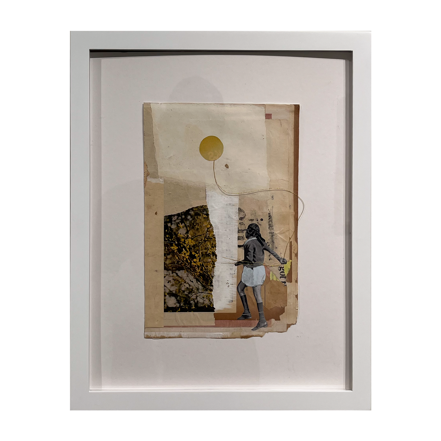Paper, acrylic, thread, found image from the Library of Congress and found image on mixed media paper mounted on acid-free matboard in a frame with acrylic glazing